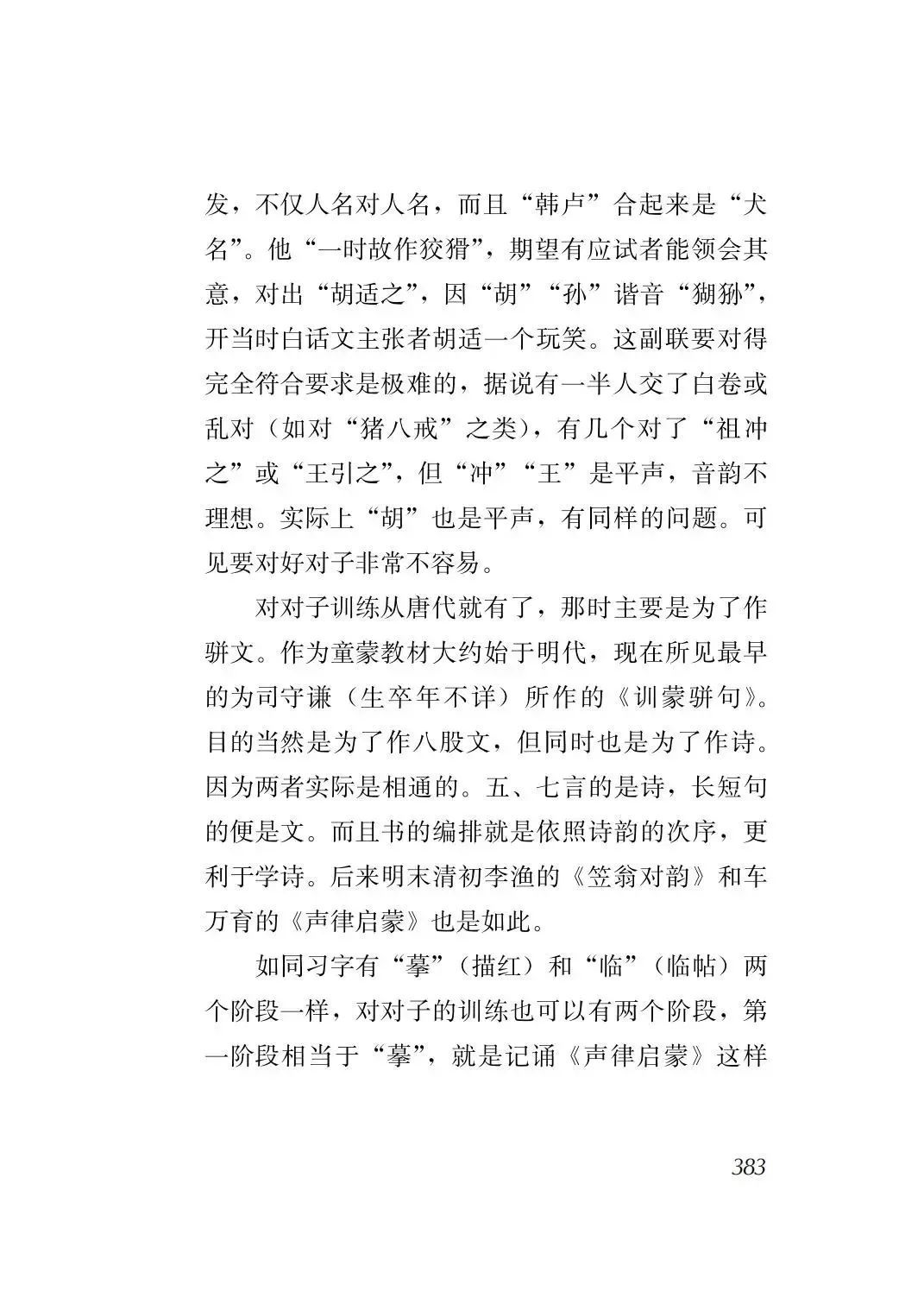 古代中国,人们如何学语文?首先是识字。识字依靠的一些童蒙读物,最常见的如《三字经》《百家姓》《千字文》《神童诗》《龙文鞭影》等,大多都编成类似诗词的韵文形式,因为这样更容易让小朋友记诵。此外,还有《千家诗》《唐诗三百首》等基础诗词读本、《笠翁对韵》《声律启蒙》等诗词格律入门书,也是重要的童蒙读物。粗通文字之后,小朋友进行的一项重要的文字创作训练便是对对子,称为“对课”,相当于现在的造句。而掌握了对对子,也就掌握了撰写近体诗的几项基本技能:平仄与对仗。这样便可尝试写一些短小的绝句、律诗。之后慢慢地再涉及长诗、长文。可见,中国传统的基础语文教育,都与诗词的阅读与写作密切相关。