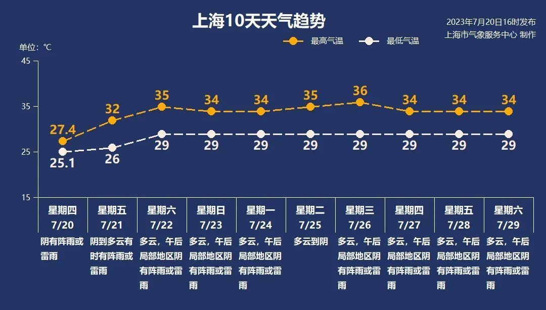 【雨后高温重返申城】周六开始,上海将主要受副热带高压控制,以多云天气为主,气温上升,日最高气温在35℃高温线附近。防暑降温不能松懈。