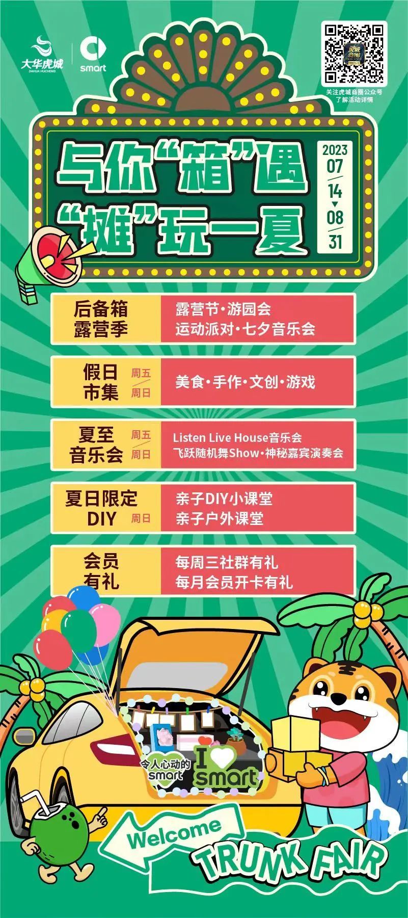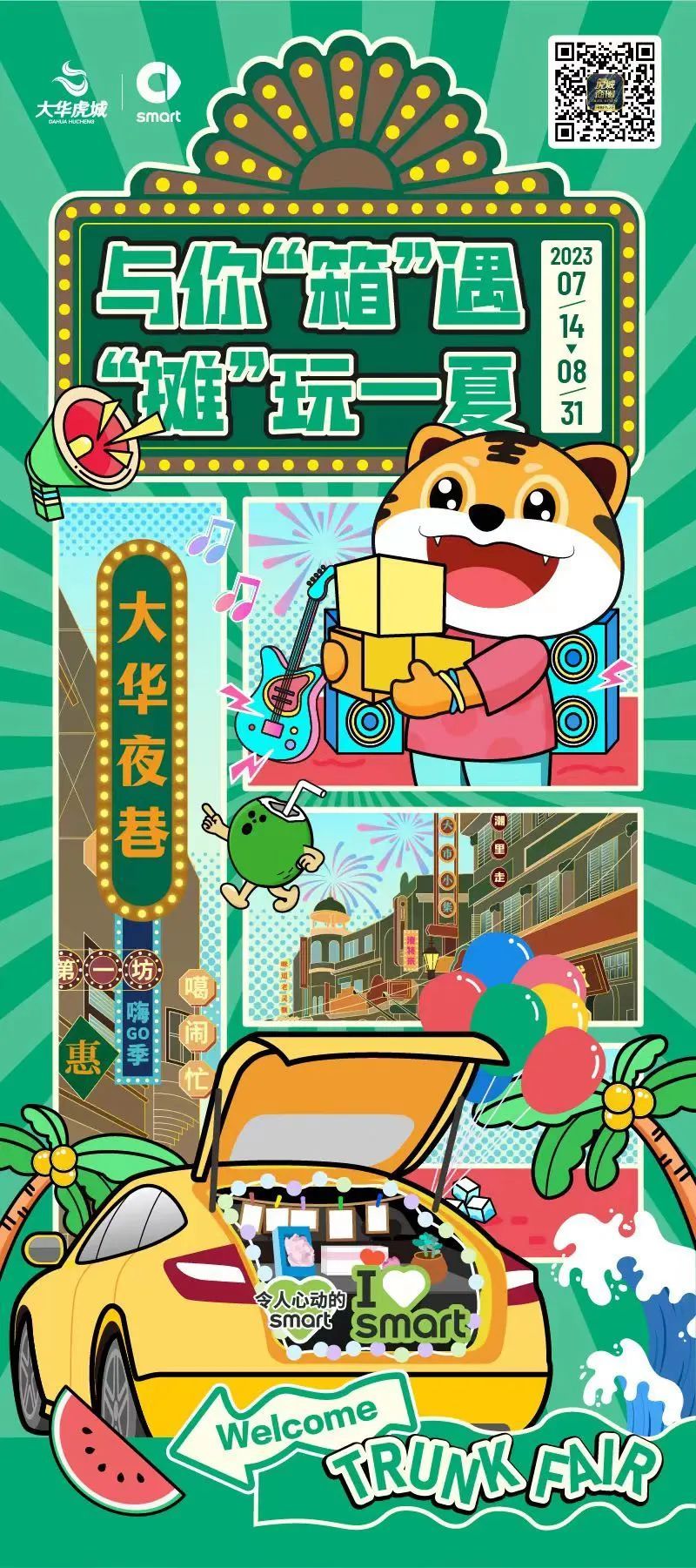 本次暑期,大华虎城商圈策划了以“与你‘箱’遇,‘摊’玩一夏”为主题的系列活动。活动利用近年来较为火热的后备箱集市热度,搭上夜经济腾飞的快车,在摊子间生发烟火气,给居民们创造一个个热火朝天的夏日夜晚。