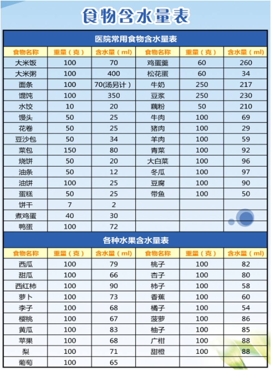 介绍一下常见食物所含水分表格吧