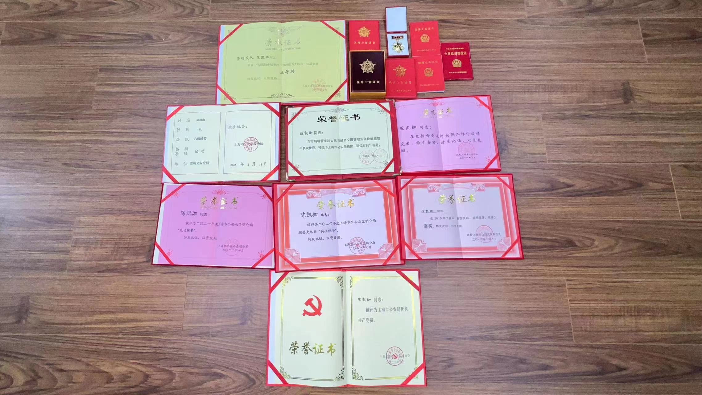 2022年,陈凯珈的多个事迹得到媒体矩阵转载,还获评上海市公安局优秀共产党员个人表彰。在上海公安辅警的队伍里,有太多太多辅警们和陈凯珈一样秉持“忠诚、敬业、团结、进取”的辅警核心价值观奋战在最一线。他们的肤色在晒黑,他们的容颜在变老,但他们的从警初心却始终不变。