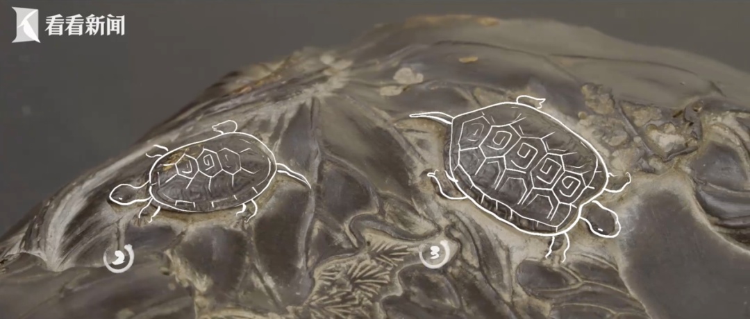 “这个池塘又是砚堂,也是属于一种巧作。有的龟在戏水,有的龟把头埋在荷叶里,还有的龟只露出一个小小的尾巴……能把这九只乌龟找出来也是一件文房里面的雅趣。”