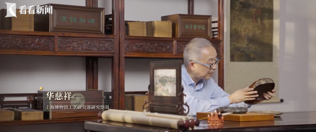 华慈祥介绍,在这件蝉形端砚上,陈端友很自信地刻了一个印款“端友后无复作之品”。“印款的意思就是陈端友以后别人都做不出来了。所以这是陈端友小砚中一件非常可爱,非常有意思的作品。陈端友等于是开创了造型象物、逼真肖形的一种艺术门派。”