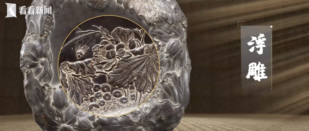 上海博物馆研究馆员华慈祥介绍,九龟荷叶砚是陈端友砚雕作品中的集大成者,陈端友砚雕在写实逼真上,已经突破了中国砚雕的极限,同时还带有中国传统书画艺术写意的风格。