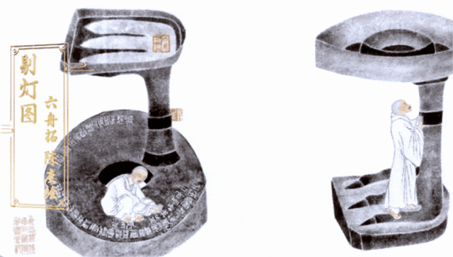 《剔灯图》是六舟最负盛名的作品。以往我们展览中见到过拓本,却没看到实物,这次我们可以看到真实的雁足灯原器。根据灯盘外底所刻铭文,可以知道这件灯制造于竟宁元年(前33),为皇后之宫所有。