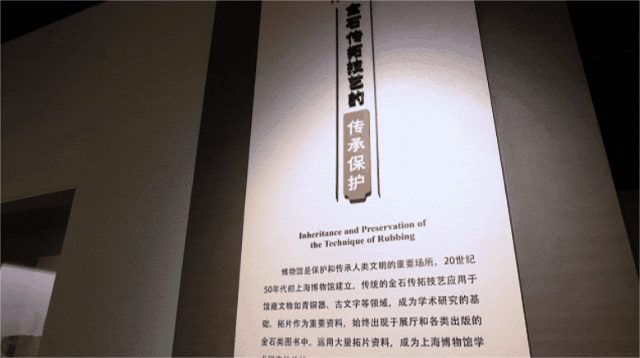 这一部分重点展示了当代金石传拓技艺在博物馆中如何为中华文明的传承保护做出自己的贡献。强调“全真”的拓片,作为重要资料,始终出现于展厅和各类出版的金石类图书中。运用大量拓片资料也是上海博物馆学术研究的传统。