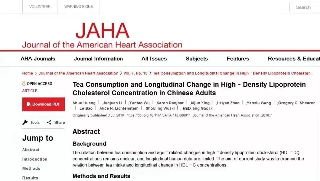 研究分析了8万多名中国人血液中高密度脂蛋白胆固醇(HDL-C)水平的变化与喝茶的关系,随访了6年的时间。