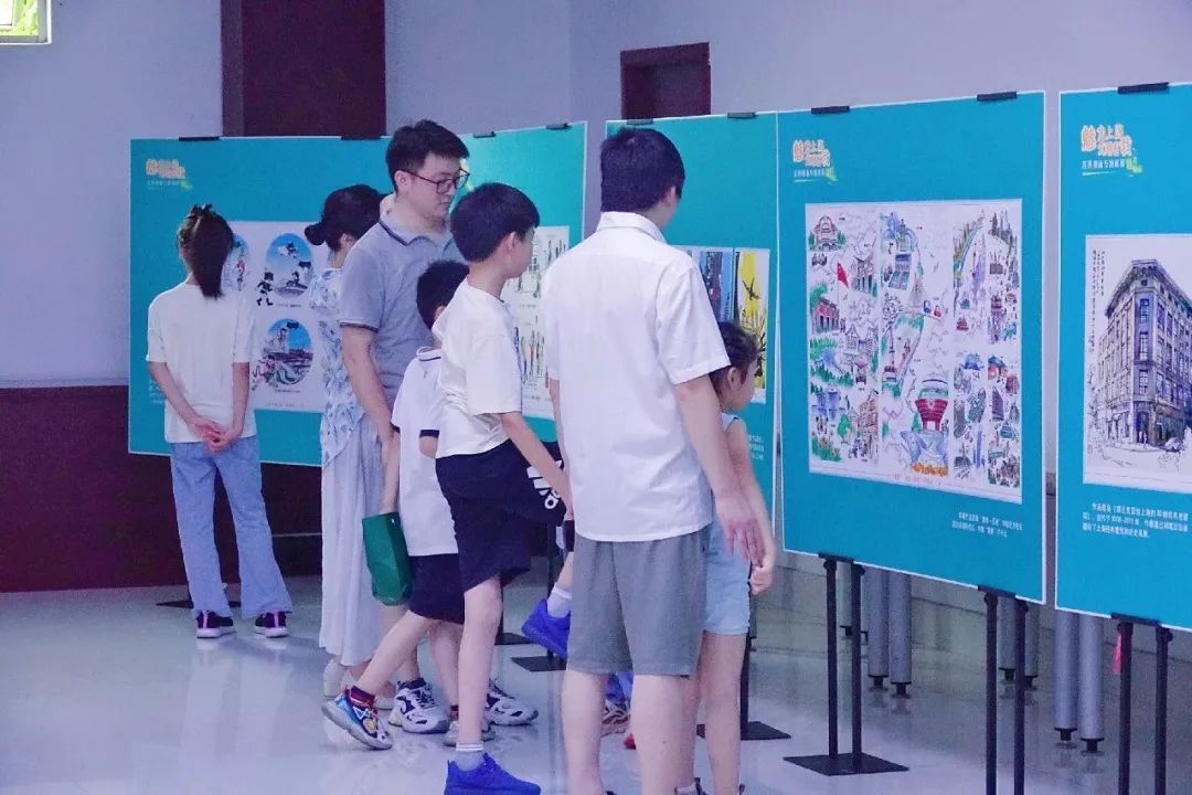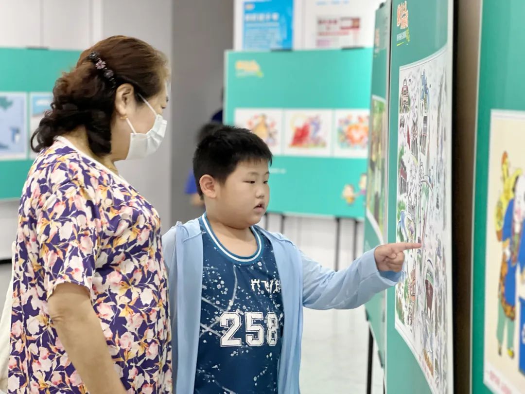“这些漫画色彩丰富,形式多样,画上的内容也是我们熟知的身边事,特别有意思!”学生胡涵睿趁着暑假前来观展,看到会心处还忍不住拍照记录。