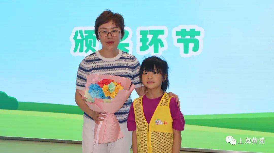 在结业仪式上,外滩街道党工委副书记翁思诗为优秀的暑托班同学以及志愿者颁奖,并为2023外滩街道爱心暑托班第一期结业仪式进行致辞。学生代表也送上了暑托班小朋友们一起亲手制作的玫瑰捧花。