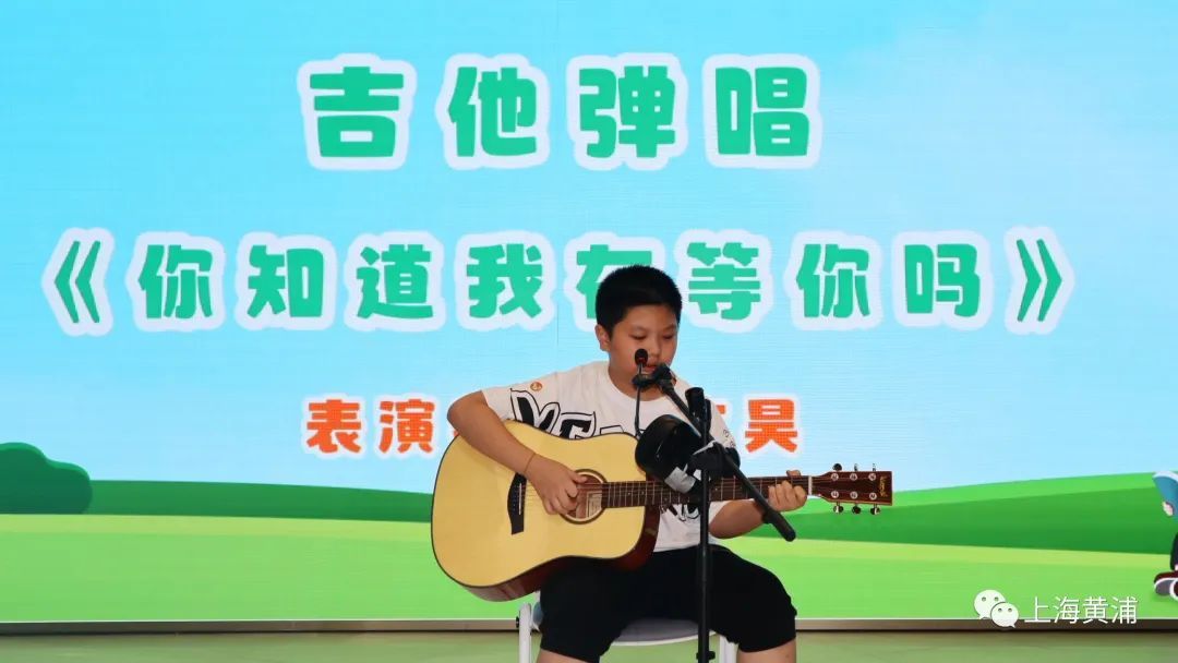 朱文昊小朋友为大家带来了吉他弹唱《你知道我在等你吗》。舞台上,朱文昊小朋友熟练地拨动琴弦,清澈的歌声富有穿透力,令在场的家长、老师还有同学们印象深刻。