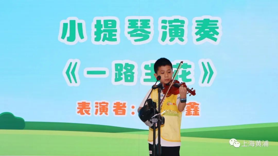 一开场,杨浩鑫小朋友就大展身手,为大家带来了小提琴独奏《一路生花》,小小演奏家熟练拉动琴弦,琴声美丽悠扬,为爱心暑托班第一期结业仪式拉开了序幕。