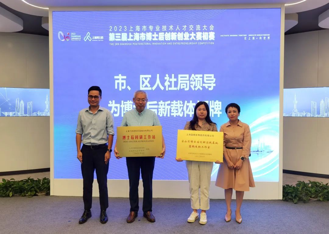 大赛现场,市人社局、区人社局相关负责人共同为新晋成立的博士后工作载体——飞凯材料国家博士后工作站及蓝鹊生物博士后工作室授牌。蓝鹊生物运营负责人说:“为保障我们的mRNA技术的成熟应用,以及产线的正式投产和达产,非常迫切地需要借助博士后这样的平台,吸引更多海内外优秀博士后。为此,宝山区人社局还特地为我们开辟申报绿色通道,不到一周,就把成功报批博士后工作室的材料送到了我们手上,让我们感到既惊喜又温暖。”