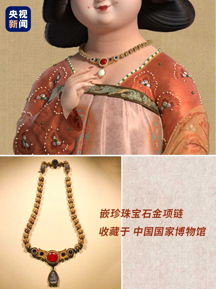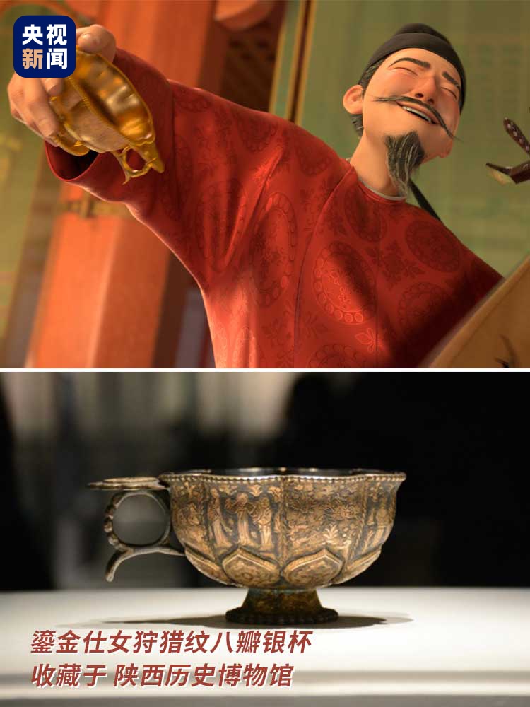 近日,电影《长安三万里》火了 以诗词为代表的大唐文化俘获了无数观众 除了诗词 电影中有很多一闪而过的文物形象 很多几乎复刻了 实际出土的唐朝文物 今天就带你来看看吧 大唐公主的精致从“头”开始 电影中,玉真公主出场不多却尤为重要 她是唐玄宗李隆基最宠爱的妹妹 非常乐于向他举荐贤能 为了寻求玉真公主的引荐 高适献枪舞、王维献曲、李白献诗 △岐王为举荐人才,邀请玉真公主做客,王维才得以入仕。 电影中“岐王夜宴”片段 玉真公主举手投足之间都是娇俏可爱 在洛阳博物馆 我们找到了玉真公主的同款头饰 发簪、花饰的设计几乎复刻了 鎏金银饰中的绶带形簪、Ⅱ式花饰 绶带形簪的4条绶带相互缠绕 刻有花瓣纹、菱形纹、卷草纹↓ Ⅱ式花饰是镂空雕刻 整体缠枝花纹,中间有两只鹊鸟↓ 从精美头饰中可以窥见 大唐高超的金银制作和镶嵌工艺的水平 带上“文物攻略”看电影 除了发簪、花饰 玉真公主的花钿发饰 与李倕墓出土的配饰非常相似 这个配饰是身体装饰组佩的一部分 玉真公主戴的项链复刻了 李静训墓出土的嵌珍珠宝石金项链 李静训是隋代贵族,备受宠爱 她去世时只有9岁,陪葬品尤为奢华 玉真公主与岐王欣赏高适枪舞时 身后的屏风画100%还原了 唐朝画家李昭道的《曲江图》 当时的曲江池游人如织、一片繁华 跳舞的胡姬像极了 敦煌壁画中的飞天舞女 她戴的镯子是镶金白玉臂环 三段白玉可以自由抽取插合,便于佩戴 扬州歌姬苏十六在船上翩翩起舞 梳的发髻“单刀半翻髻”在盛唐极为时髦 在出土的唐代陶俑、陵墓壁画中 经常可以看到 此前的唐泥塑彩绘仕女俑头像曾介绍过 详情 仕途鼎盛时的李白 在曲江酒楼饮酒作诗用的酒杯 与鎏金仕女狩猎纹八瓣银杯如出一辙 杯身相间刻画了 4幅男子狩猎图、4幅仕女图 李白与高适相识之初 这件酒壶来自长沙窑 唐人墨迹流传甚少 但在长沙窑瓷器上可以看到许多唐人笔迹 较为有名的是“君生我未生”瓷壶 详情 李白朗诵《将进酒》的片段 堪称电影的“高光时刻” 李白和友人碰杯的酒碗是鸳鸯莲瓣纹金碗 唐朝出土的大多为银碗,金碗极少 这件富丽堂皇的金碗可能是皇室用酒器 高适与李白救郭子仪时 李白是胡人装扮 他戴的帽子 与开元十八年彩绘灰陶参军戏俑 所戴的尖帽非常相似 《长安三万里》中,熟悉的唐诗一响起 观众们仿佛“血脉觉醒” 那是专属于中国人的浪漫 那是刻在中国人骨子里的文化基因 呈现在画面中的文物也是如此 中华文化底蕴深厚,余韵悠长 有史可考,有据可依 就像高适所说: “只要黄鹤楼的诗还在,黄鹤楼就在” 来源:央视新闻 编辑:池舒悦