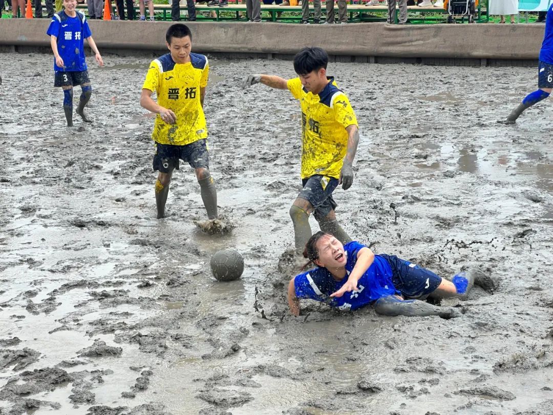 值得一提的是,本届泥地足球赛在场地和硬件方面做了全面升级,场地已调整为40米×20米的标准,更为宽敞;四周也做了软包,防止磕碰受伤;比赛用的泥浆,也比之前更加细软、舒适。