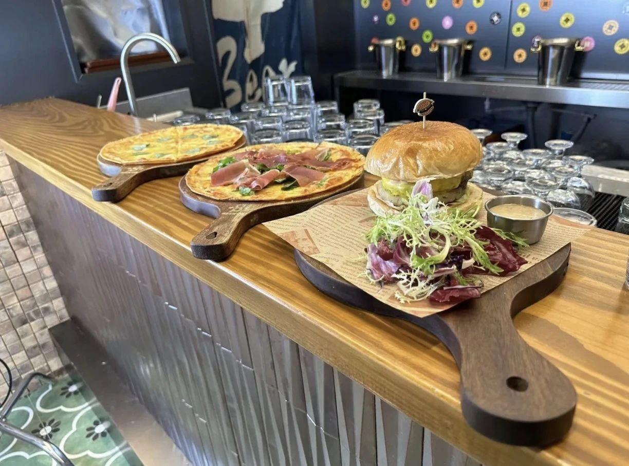 除了精酿啤酒,八品脱还在饭点为顾客提供西式小食。“根据顾客的反馈和需求,午市我们会有汉堡、披萨之类的主食,晚市主要是为了配合啤酒提供一些小吃。”记者了解到,八品脱制作的披萨并非厚底,而是薄脆的饼底,使用的牛肉则是安格斯牛肉,可以烹饪出五分熟或者七分熟的口感。
