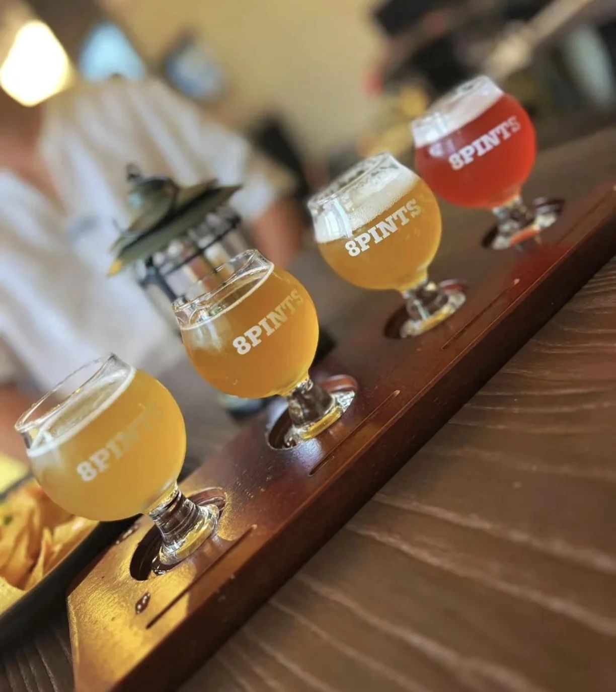 待顾客落座,服务员便会前来询问关于生啤的偏好与风格,并加以推荐。八品脱的酒类品种丰富。据店员介绍,店中包含五十余种酒,常卖酒有三十余种,另外二十余种则会不定期轮换,为顾客制造小惊喜。