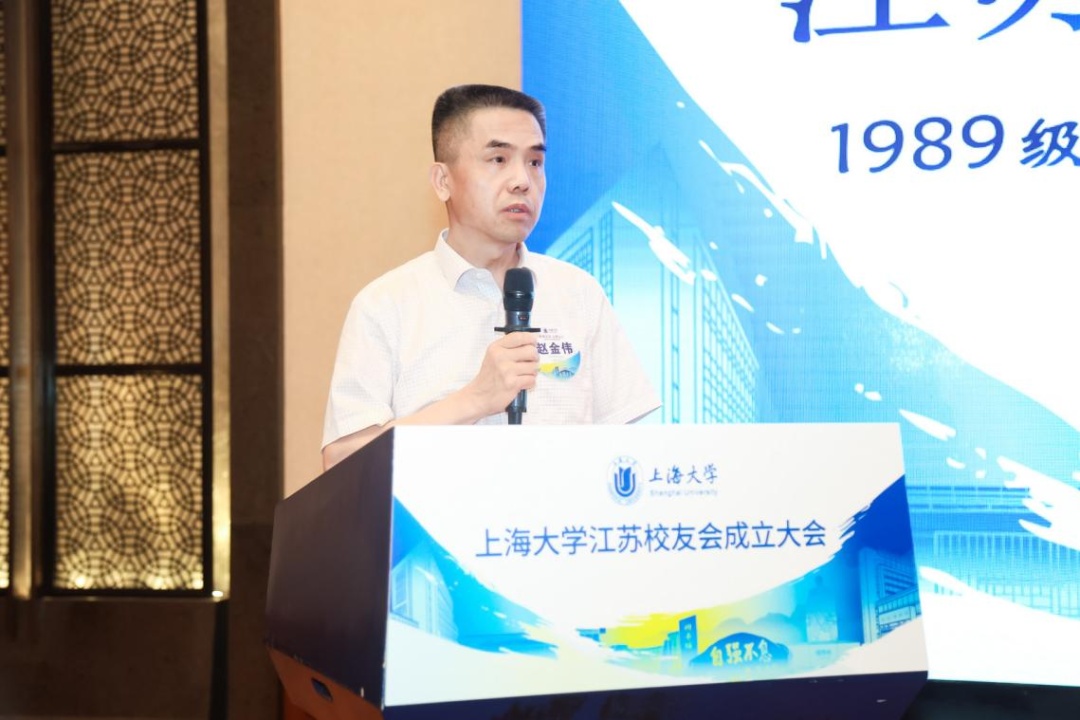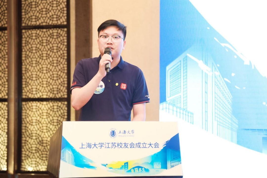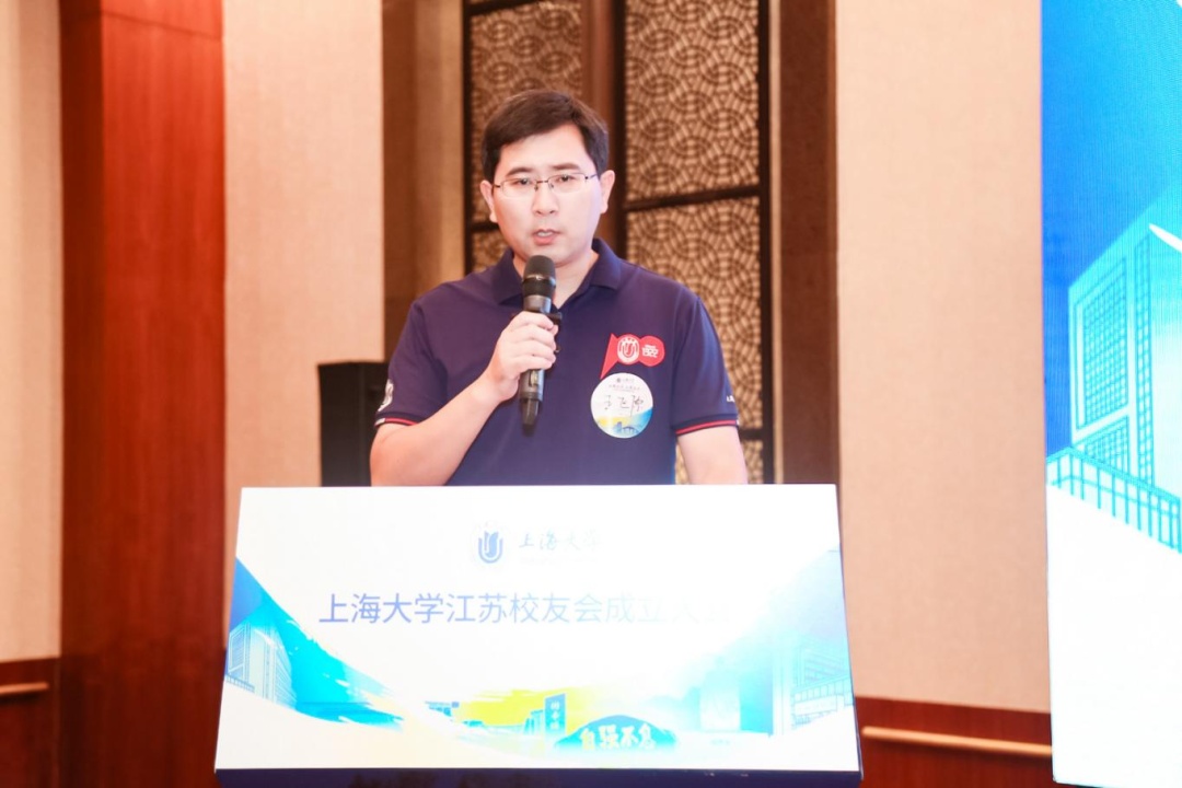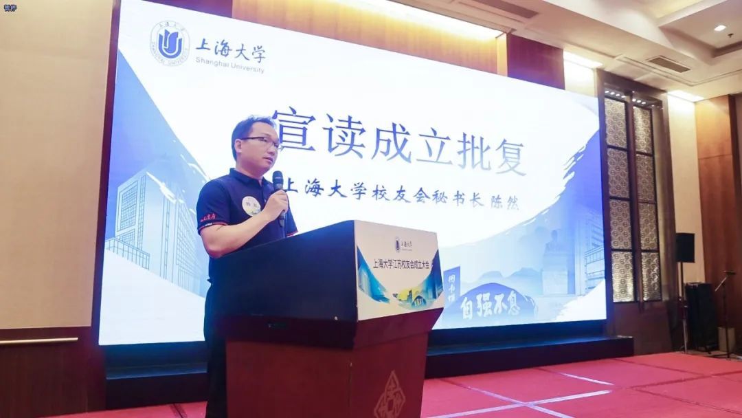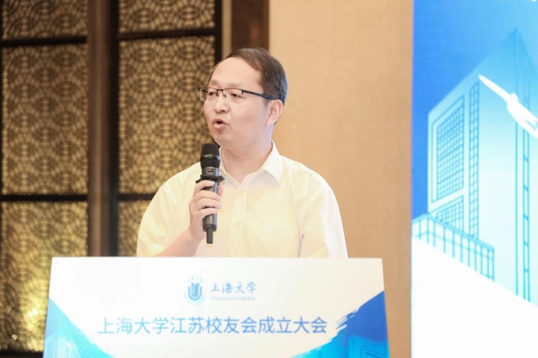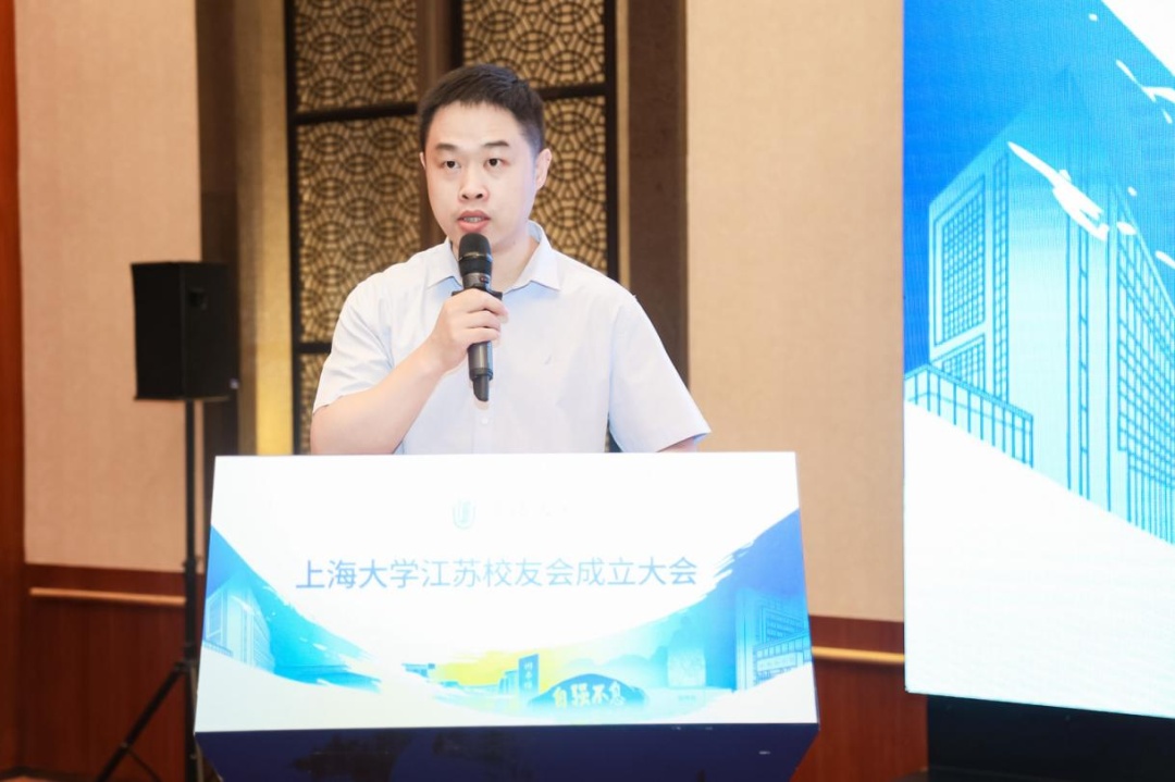上海大学校友会秘书长陈然代表学校宣读《关于同意成立上海大学江苏校友会的批复》。