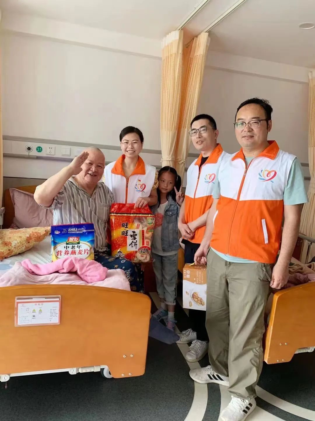 住院期间,志愿者们轮流探望秦老伯。秦老伯说:“今年父亲节那天,下着大雨,志愿者还带着孩子和老公,买好鲜花和礼品陪我过节。”孩子一声声地叫着爷爷,让老人感受到了久违的温暖。