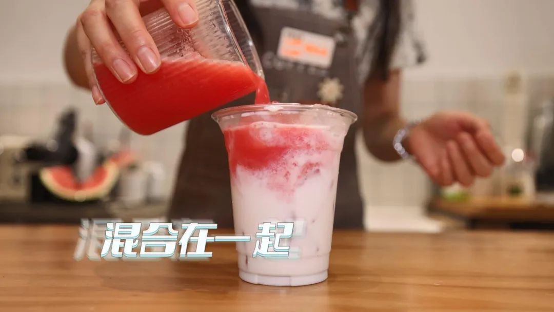 西瓜椰椰:现榨西瓜汁混合浓厚椰乳,口感清甜,层次丰富,是夏季消暑降温的理想选择。