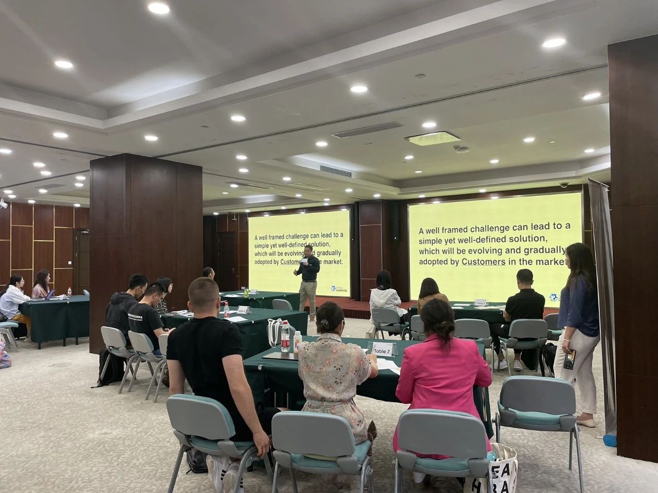 7月22日上午十点,古北市民中心二楼,精品创业指导系列课程的第一堂课——“用户洞察和发现机会”拉开序幕。课上,全球创业领导力训练营(SLP)中国课程负责人YC Zhang就“如何将自己的创业想法落地”这一话题与来自各个国家的创业者们展开了积极的讨论。