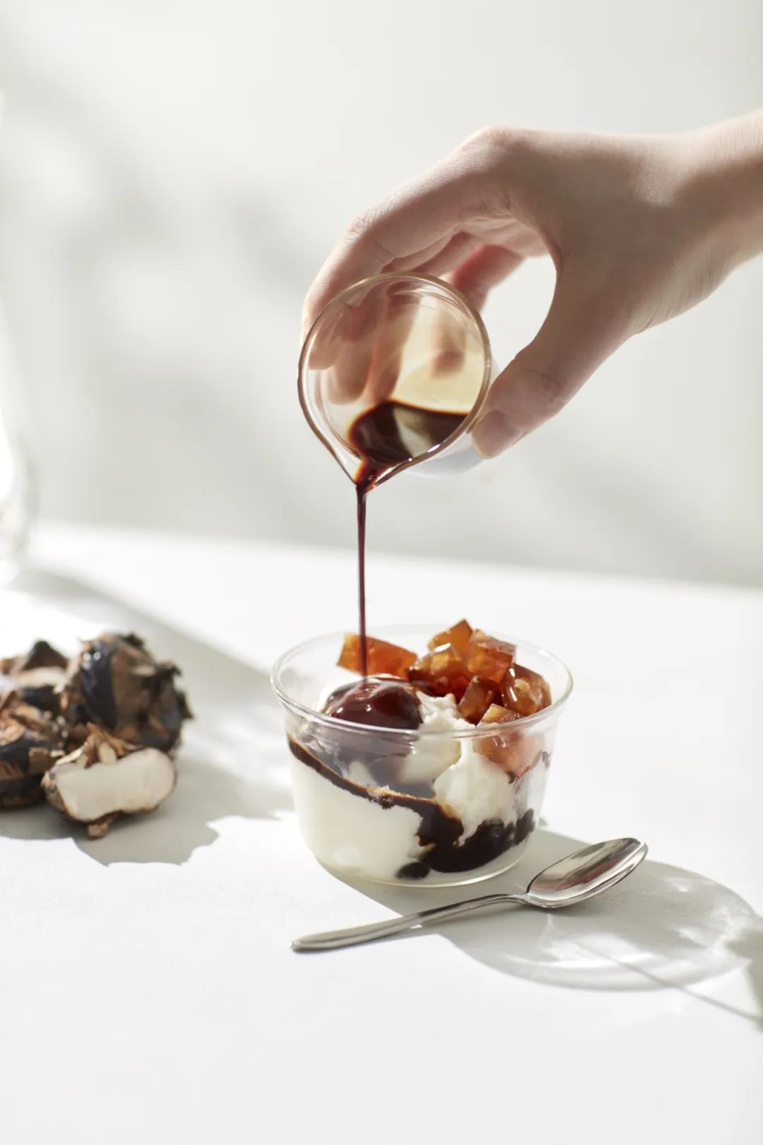 蓝瓶咖啡蟠龙天地店最不能错过的是该店首发限定的小食:马蹄糕阿芙佳朵。马蹄糕柔韧弹滑,冰淇淋的清甜在齿间流溢,入口冰凉爽口,唤醒夏日味蕾。