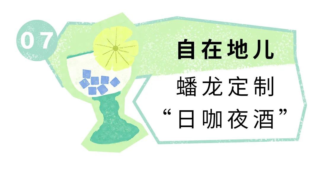 “日咖夜酒”的最完美呈现,到了夜晚,自在地儿变身微醺小酒馆,适合在欣赏蟠龙的夜景之后,小酌一杯,放松心情。