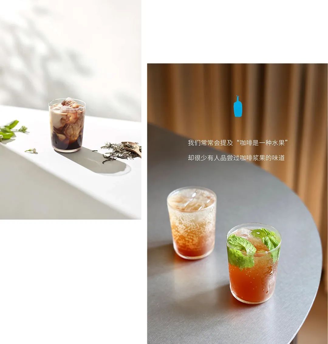 茉莉新奥尔良式咖啡以经过茉莉鲜花窖制的绿茶,融合于蓝瓶咖啡经典NOLA基底,入口清新甘甜,回味香醇。而咖啡果皮气泡水的清爽口感,更是一口消除氤氲的暑气。