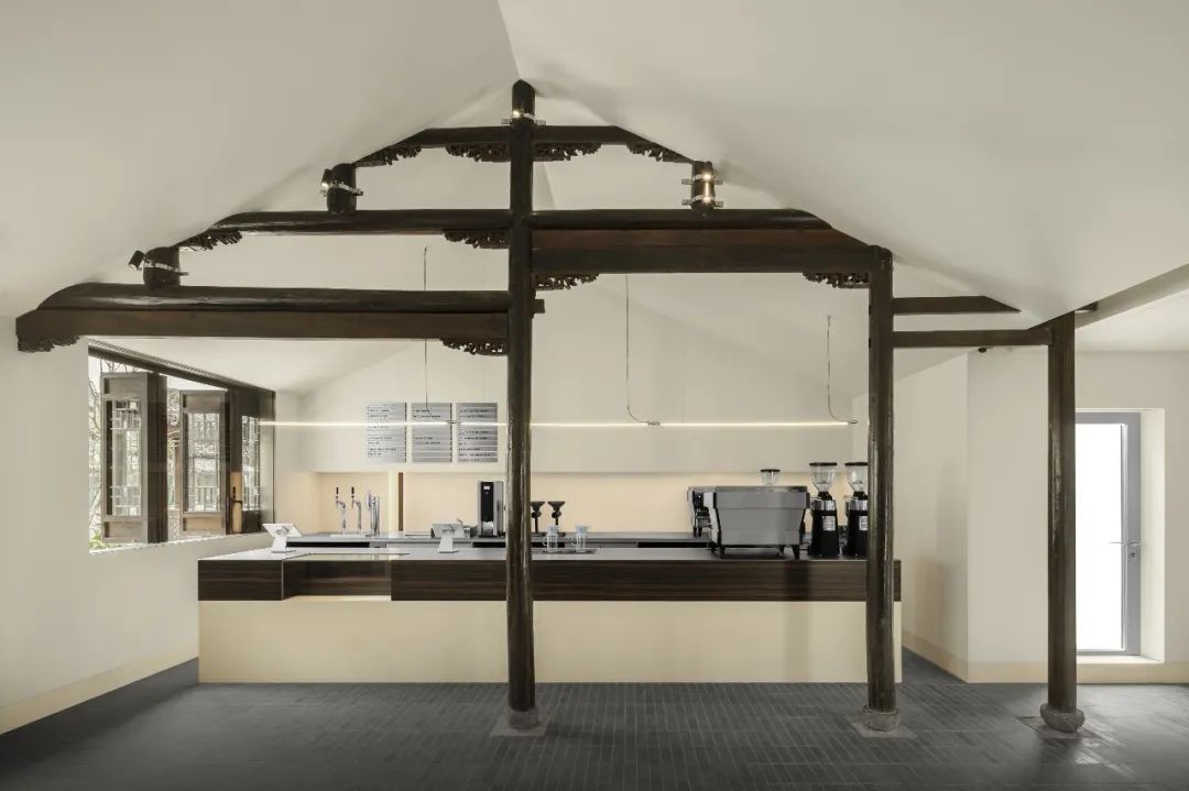 蓝瓶咖啡蟠龙天地店位于一座合院式木构的百年古宅“借园”中,“穿斗抬梁”木结构、“前店后宅”的典型格局和江南的留白之美,保留了传统的江南建筑特征,为顾客打造回溯江南文化诗性和水乡生活的咖啡体验。