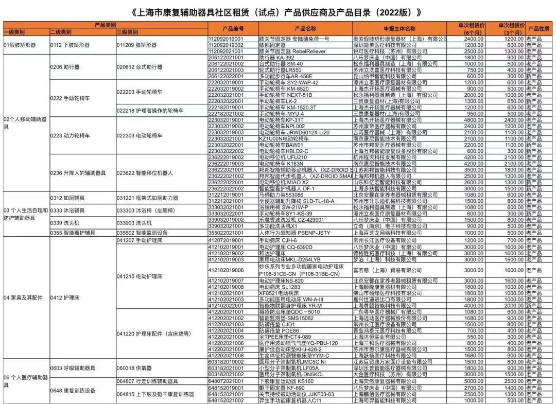 租赁《上海市康复辅助器具社区租赁服务(试点)产品目录(2022版)》中的产品,可以申请租赁服务补贴。补贴金额为辅具租赁服务价格的50%,每次租期3个月或6个月,补贴金额不超过(含)1500元/半年。