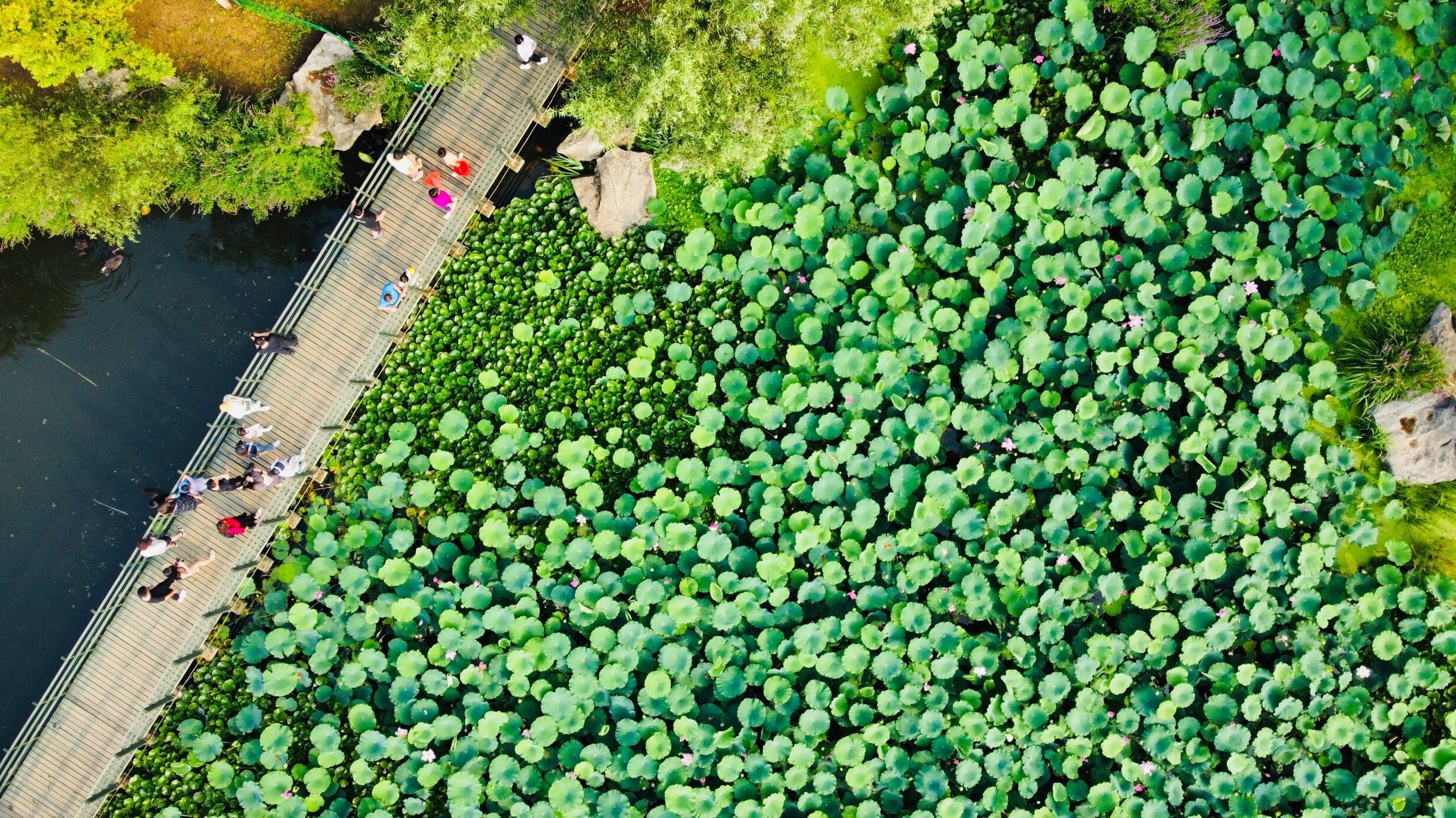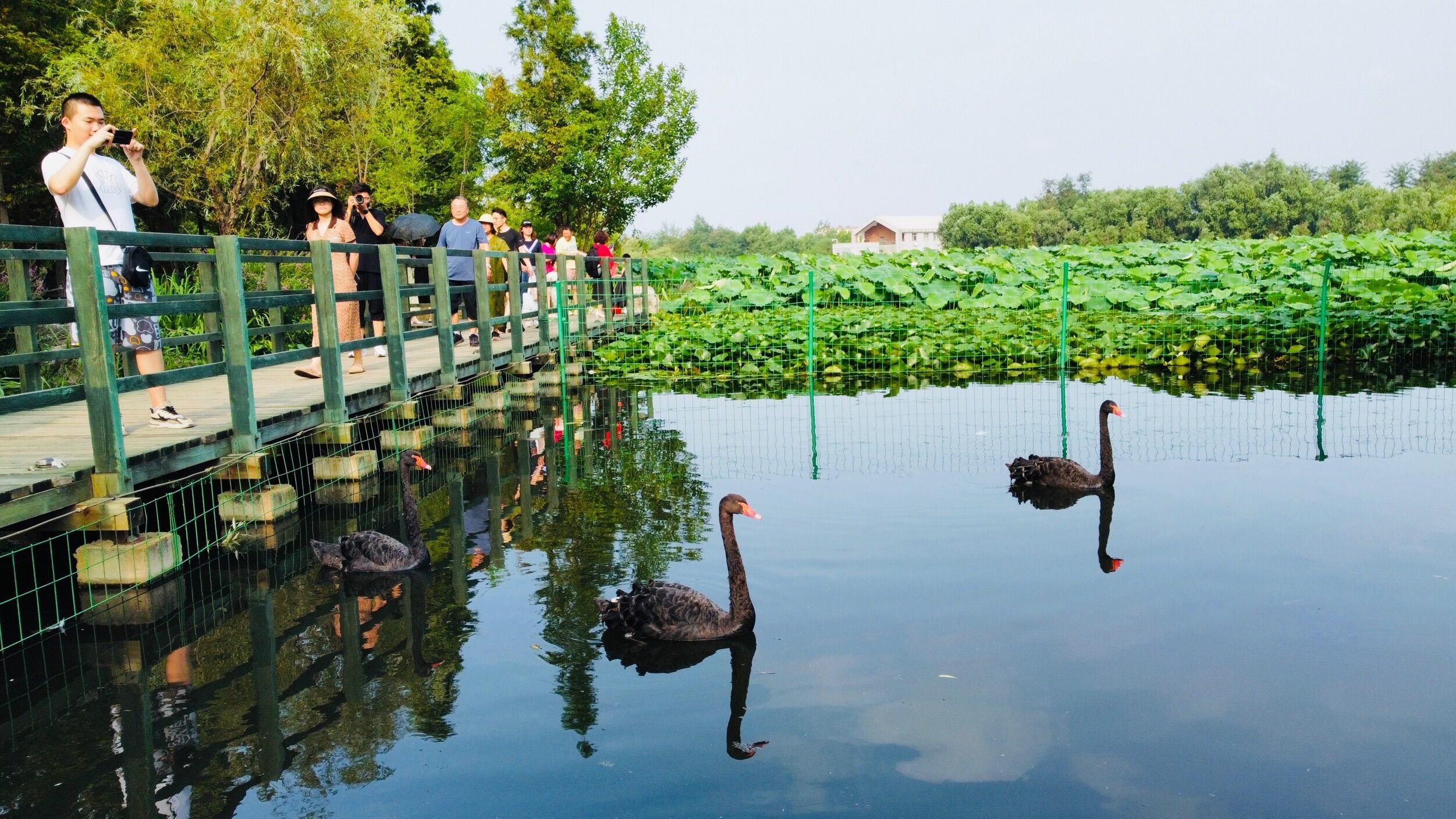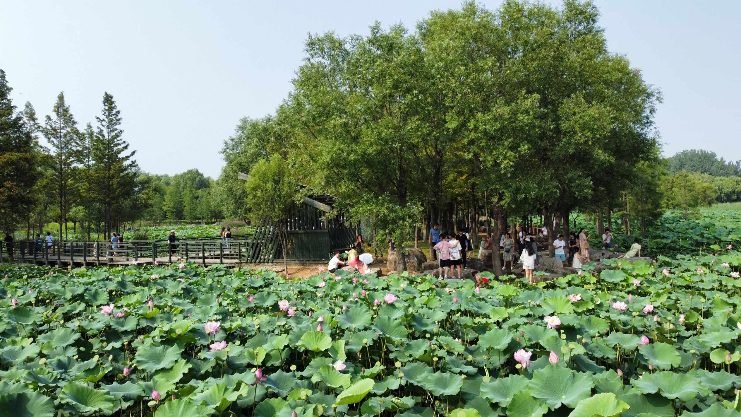 7月23日,在位于烟台市牟平区武宁街道的鱼鸟河网红打卡地“水上花境”,荷花盛开,绿树成荫。游客、市民纷至沓来,品荷香、享清凉,感受生态美景,共享生态文明建设成果。(大众日报客户端记者 卢鹏 通讯员 曲寓直 报道)