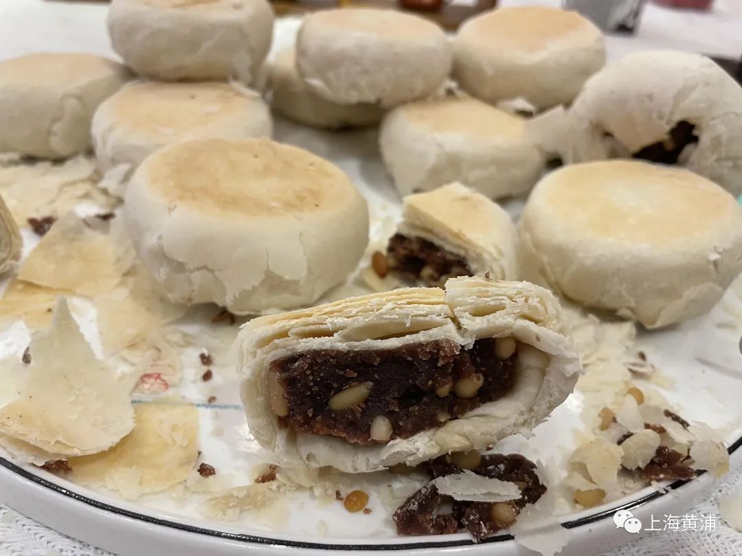 记者在现场看到,从形状上来看,高桥松饼颇似苏式月饼,用刀切开,层次完整清晰,这与苏式月饼比较粘连的油酥皮大不相同。