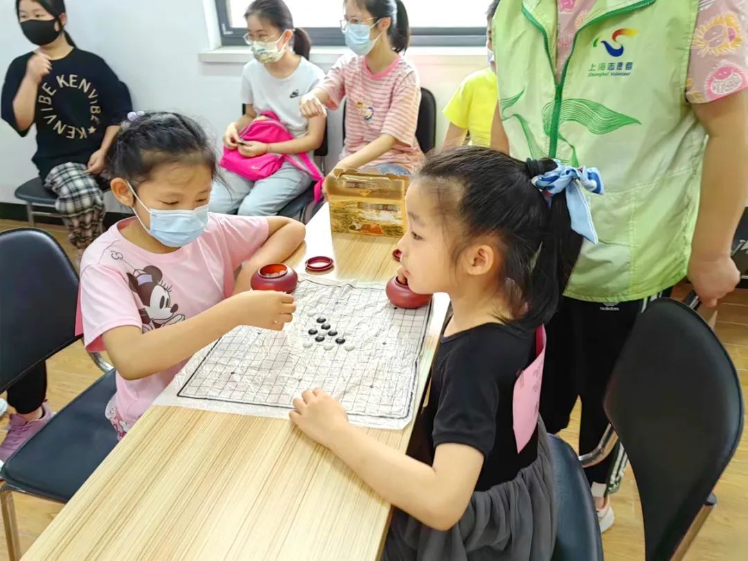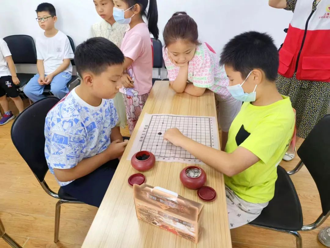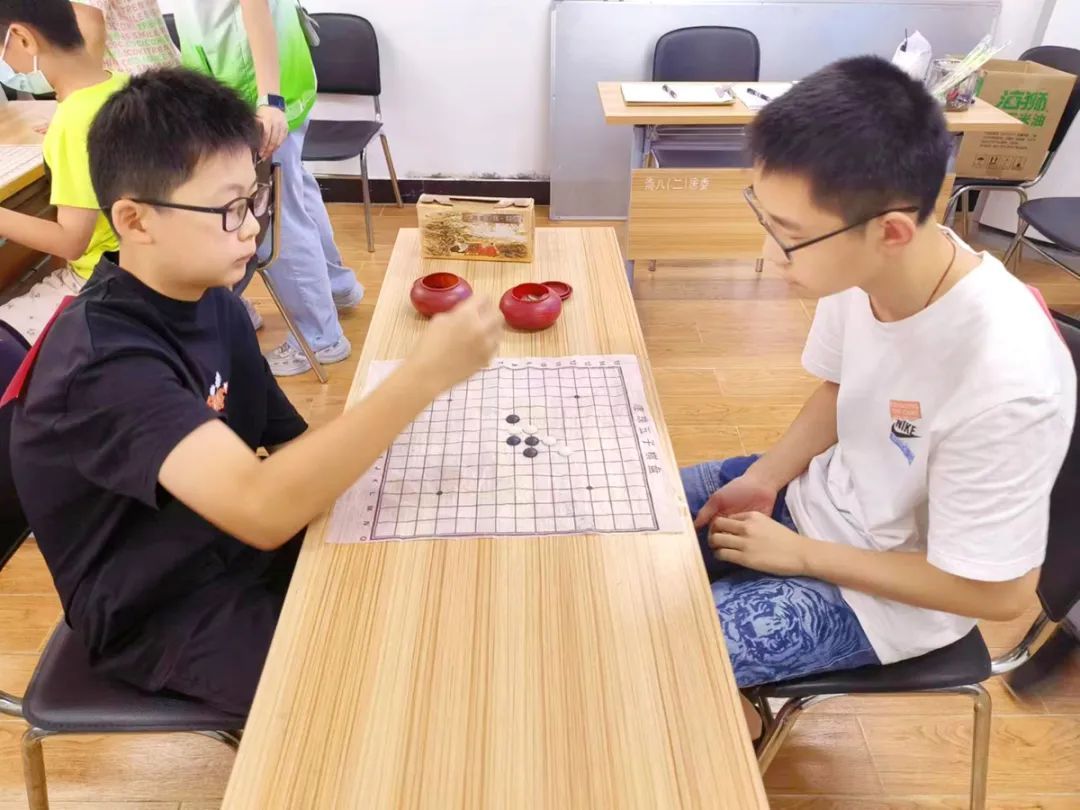 活动开始,五子棋对战区,比赛分两两对决,6人为一组同时开局,胜出者再进行PK。只见“社区小先生”们冷静思考,黑白棋子争锋对决,“对对对,下这里!”场外观战的小朋友忍不住指导,现场气氛紧张又兴奋。五子棋对决需要策略和思考,可以锻炼孩子们的逻辑思维、推理能力和决策能力,让孩子们既能锻炼脑力,又能结交新的小伙伴。
