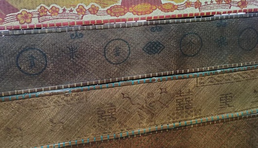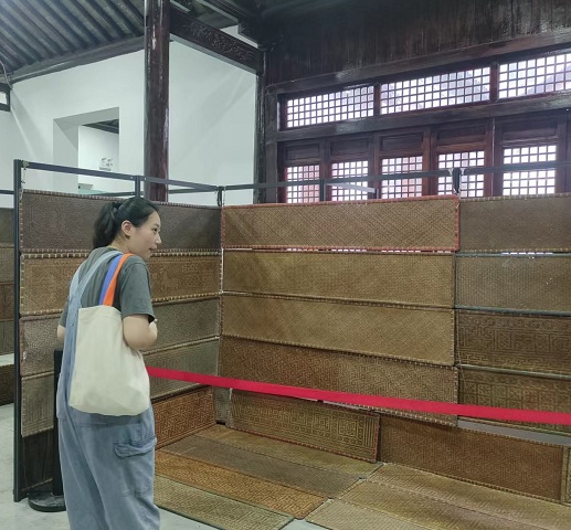 仓席竹编传承人唐正龙介绍道,竹编仓席是六七十年代农村地区的生活用品,绕着床的三面摆放,仓席上面的图案和文字皆是根据当时的情景来编绘,反映了当时精湛的竹编工艺以及浦南一带的文化底蕴,“我们希望通过收集、整理、梳理、展览,唤醒人们对乡村、对文化、对生活的感怀,让我们的传统技艺拥有‘可持续性’”。