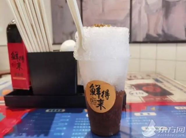 凭借“排骨年糕大王”出名的老字号鲜得来,也把这份季节限定的“老咪道”复刻了出来。在堆得扑扑满的刨冰上洒着晒干的桂花,打底的是香甜软糯的红豆,拿到手后一定要小心翼翼地先用勺子或吸管用力戳戳,不然很可能一大块刨冰就噗噗噗洒落下来。等糖水和刨冰充分融合,大大吸一口,入口的瞬间,浑身一激灵,整个人都似乎被“冰”了一下。