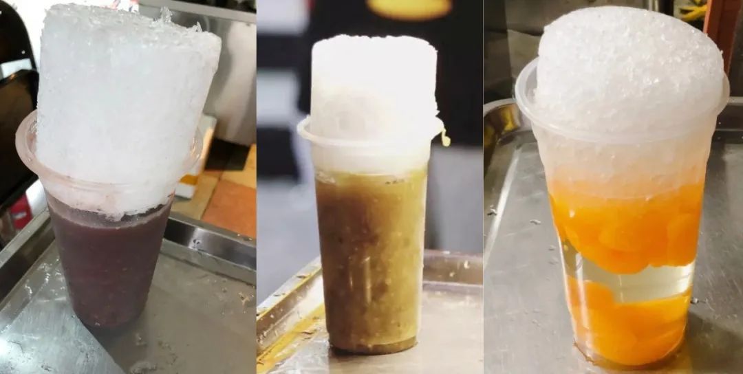 此时,刨冰呈上小下大的圆台型,卡在杯口下约两公分的位置。食客拿一个塑料小调羹(以前还是钢宗的)先慢慢地打开一个小缺口,再小心翼翼地将冰霜一点点地往冰水里凿。待凿下去一点了,就可以往上舀出一调羹,咽到喉咙口时,一股冰凉便迅速沁入心脾。