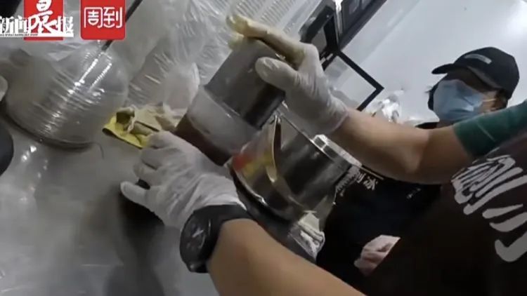 除传统绿豆冰外,店家还创新推出冰镇绿豆圆子。先在碗的底部铺上一层提前熬煮好的绿豆汤,再把冰块放进一旁的刨冰机里,用手压一下取出冰后,均匀地散在绿豆汤上,再铺上一层绿豆汤并加入小圆子,最后淋上挂花酱便大功告成。