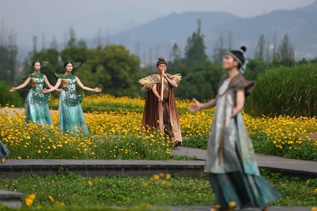 “巫”则展现了古人观天看地,进而产生水利工程和原始信仰......舞台艺术是视觉和听觉的合体,需要构建每个角色不同的定位。从今天可以见到的传统江南舞蹈的形态、特色中“倒推、再创造”,巧妙创作形成了独具南方风情魅力的动作舞姿。