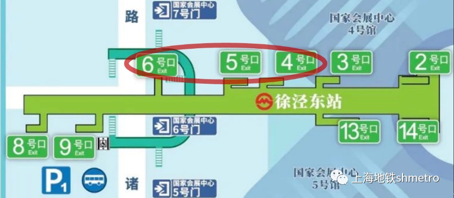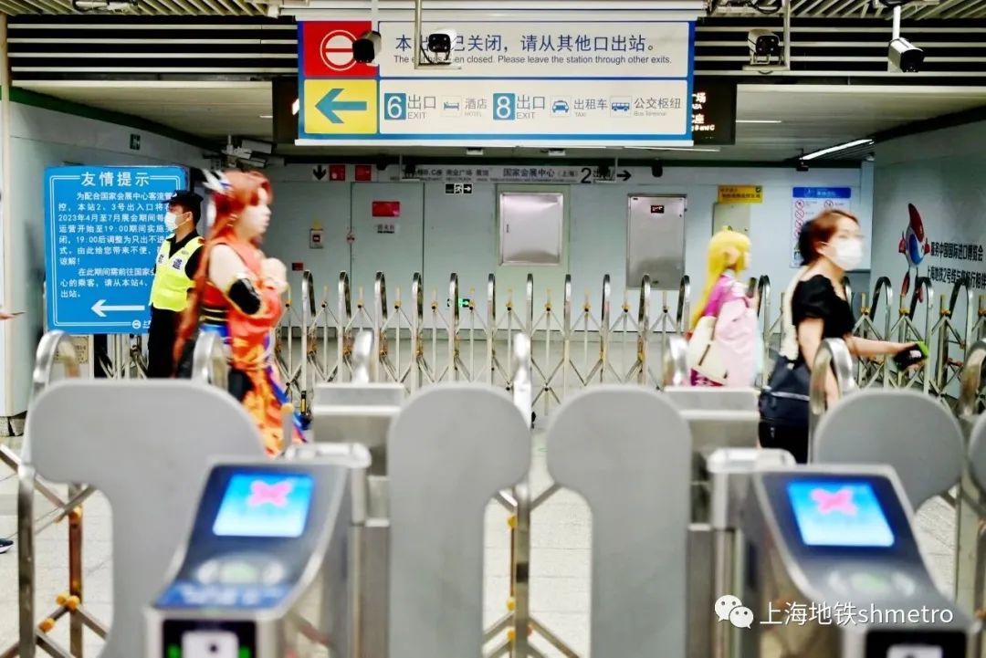 徐泾东站根据此次展会客流特性及往届展会经验,制定了相应的客运组织方案。针对上午客流集中出站的进场时段,安排人员对出站进馆的客流分别向4、5、6号口进行引导分流。从4、5号口可直接通往国家会展中心4号馆, 6号口通往国家会展中心6号门,乘客们可以根据实际情况选择出入口出站。