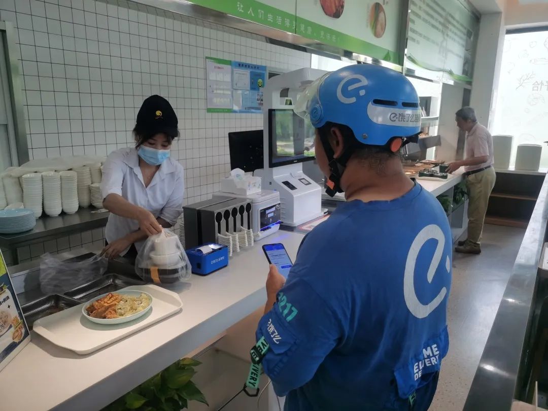 今天(7月24日)上午10点半左右,在南翔镇工作的韦女士通过外卖平台,在离公司最近的“我嘉餐厅”下单了一份午餐,两菜一汤加米饭,总价20元。大约10分钟后,快递员就把外卖送到了公司。“平时时间充裕的话,我会去‘我嘉餐厅’堂食,最近天气太热,得知外卖服务上线,就从手机上下单了。”韦女士说。