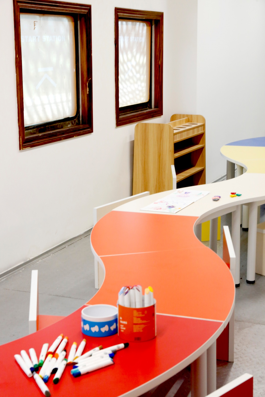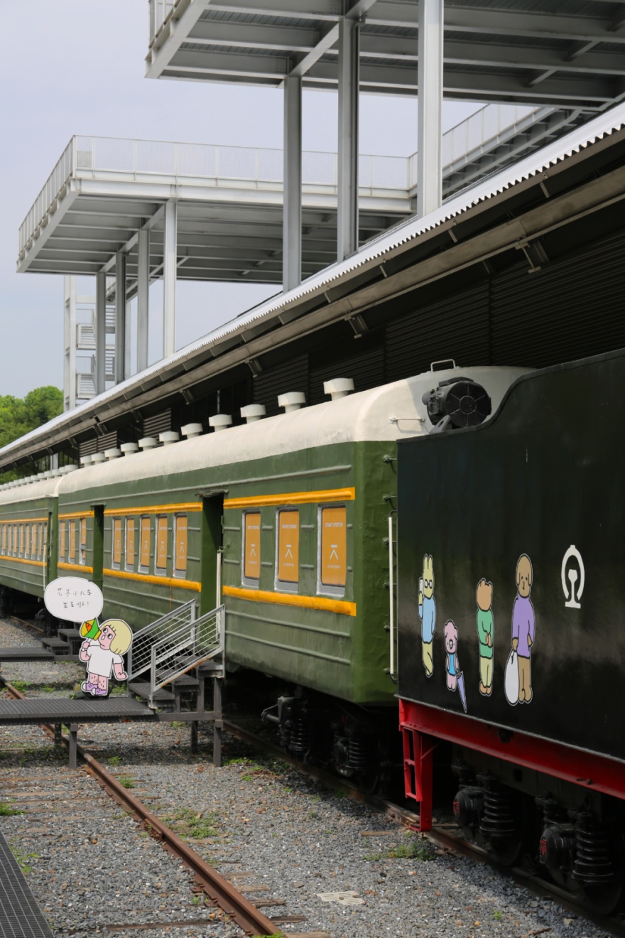 一走进车厢,怀旧风迎面而来,小乘客们感到新奇,大乘客们勾起怀念。车厢内一方面保留了老火车的经典元素,有复古的折叠座椅板、铁锈色的螺丝钉、褪了色的车厢号码牌和标语、顶部的通风口,甚至还有燃煤的蒸汽炉;另一方面,火车内的功能布局进行了改造,一节车厢以亲子为主题,设置了绘画区、涂色区、玩乐区,还贴心提供了家庭卫生间;第二节车厢则更适合大一些的儿童和成人体验,里面设有艺术创作区、迷你文创区、布艺体验区等。