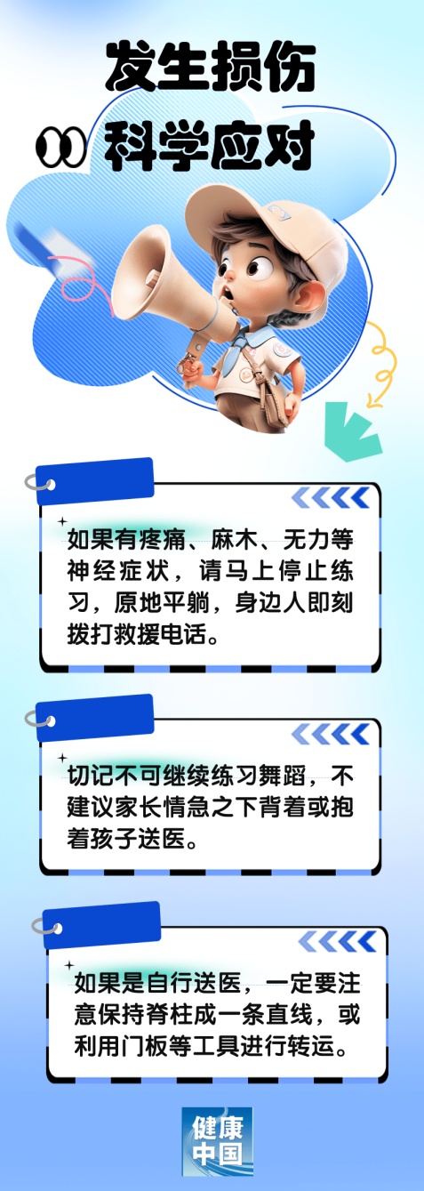 暑假期间,不少家长把孩子送到舞蹈培训机构接受集训,但下腰、压腿等动作存在一定的危险性,练习过程中要谨防脊髓损伤的发生。