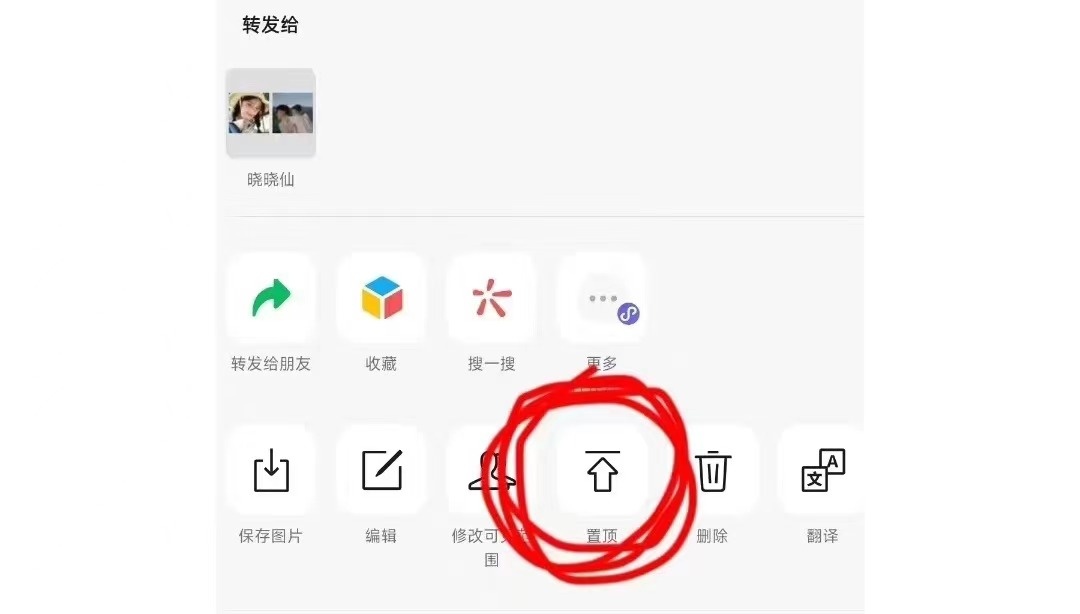 便能看到“修改可见范围”旁边多出个“置顶”按钮