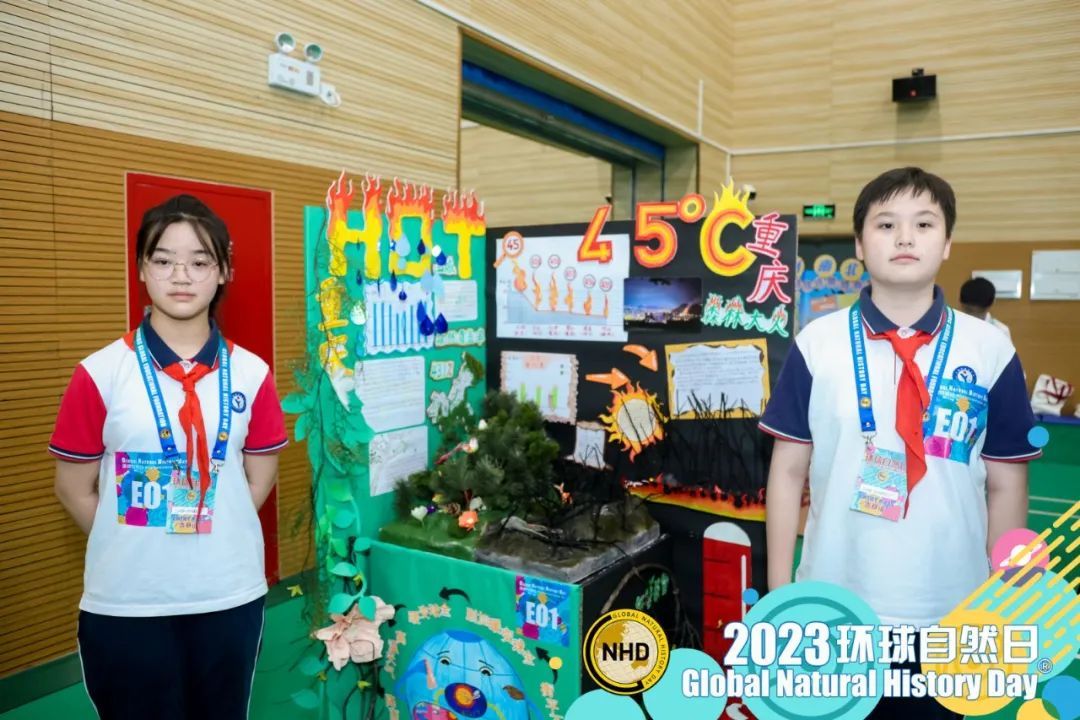来自市五中学的陈彻、黄若蘅对去年夏天重庆山火泛滥的现象进行了深度研究,带来展览作品《HOT45℃》。展板上,他们将近几年重庆的气象数据用图表的方式呈现。