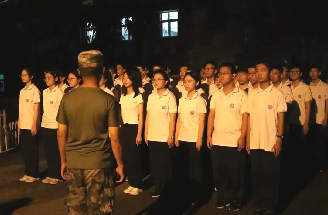 夜训开始前,总教官详细讲授六项考评,并将今日最佳寝室流动红旗分别颁发给表现良好的男女寝室。夜训如火如荼地展开,同学们在夜色凉风中认真训练。