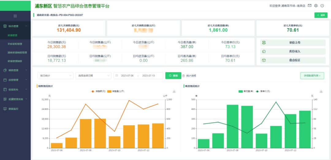对于市场管理方通过数字赋能,分别从平台PC和移动端精准了解了市场经营情况,借助平台数字化赋能,为食品安全、稳价保供提供技术支撑,提升管理能级。