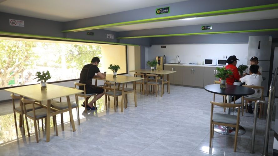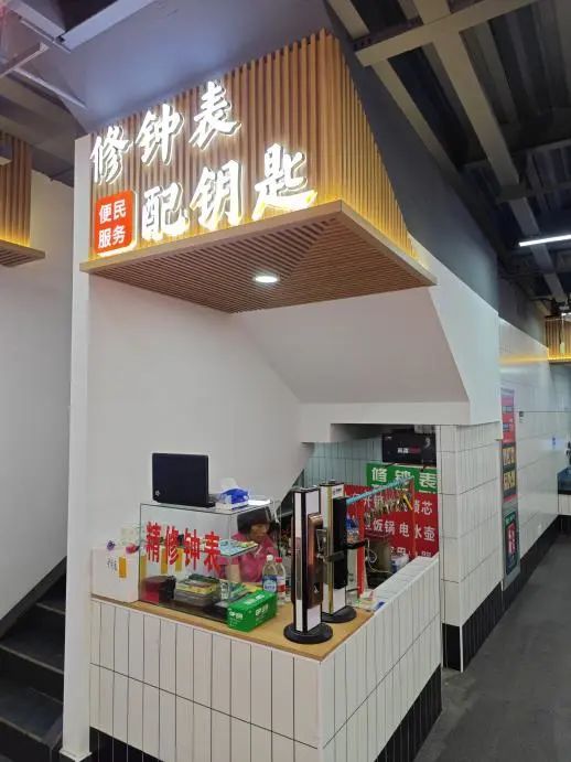 市场内配备快剪、家电维修、修钟表配钥匙、休闲小吃等便民服务,为居民提供丰富的消费选择。市场二楼复式平台被改造为休息区,母婴室、洗手间、微波炉、冰箱、开水器等空间和设备一应俱全。正逢暑期,休息区还成了经营户子女的好去处,解决了假期看护的难题,也成为居民在酷暑买菜时的避暑天地、商户日常午餐、午休的休闲胜地。