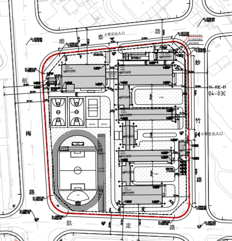 东至妙竹路,西至航梅路,南至航定路,北至顺泰路。规划用地面积25865平方米,总建筑面积21604.73平方米。建设内容:行政楼、教学楼、综合楼、食堂体育馆及配套建筑。