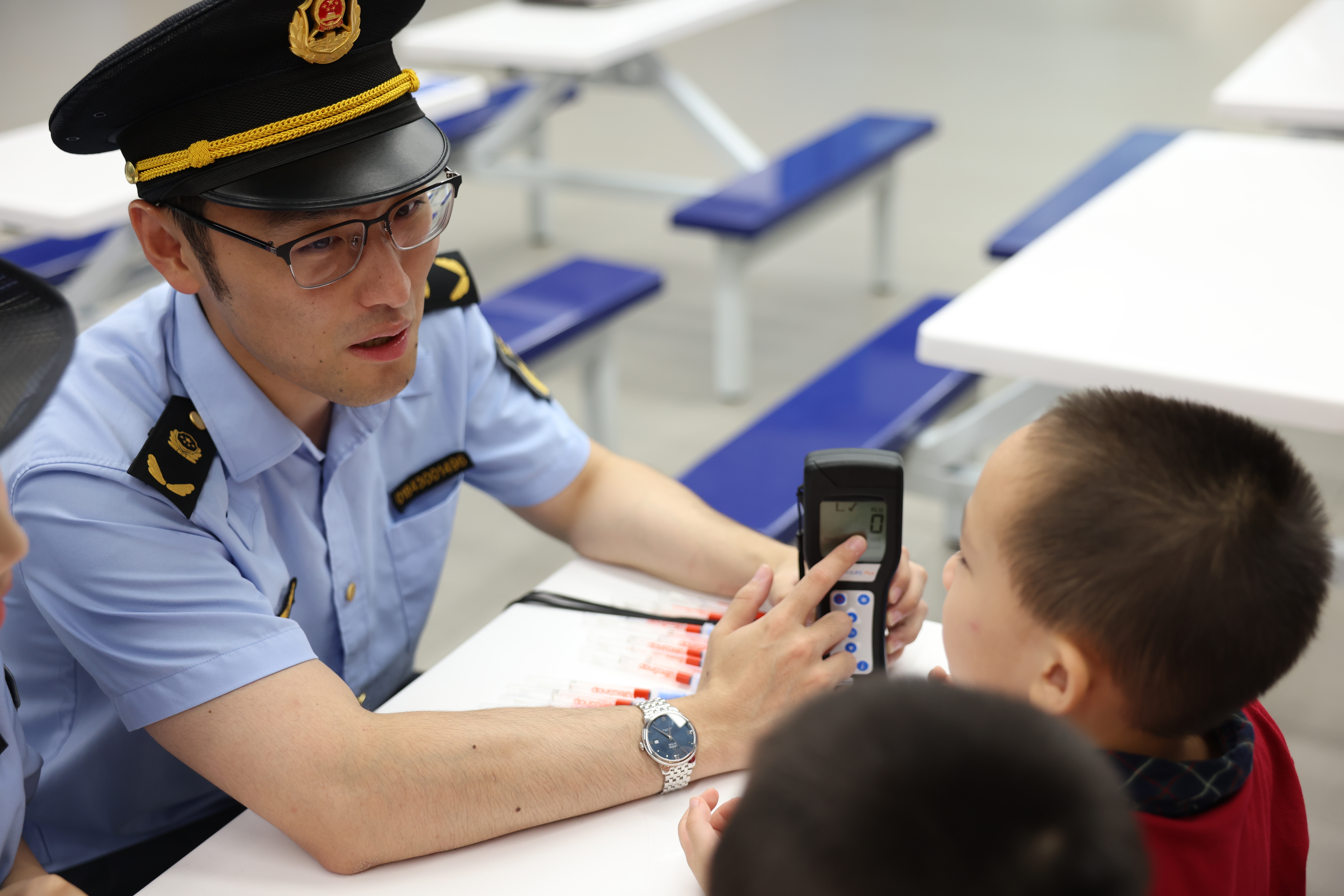 现场,执法人员利用手持式ATP荧光检测仪,向小朋友展示了洗手前后细菌数量的变化,让小朋友直观地认识到洗手的重要性。检测过程中,小朋友们认真地听着执法人员的讲解,用手触摸着精致的仪器设备,亲身感受食品安全快速检测的神奇。