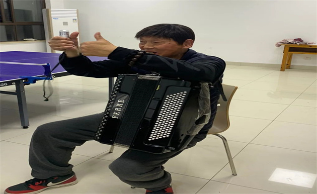 后来,日子越来越好,2017年林铮和爱人朱丽娜搬迁到了同盛园小区,并由此结缘“同福秋之声”合唱团。刚入团时,合唱团正缺伴奏,林铮马上就填补了这一空缺,而正是因为他的弹奏让合唱“活”了起来。电子琴、手风琴,林铮都能信手拈来,除了伴奏,他还兼任声乐老师,帮助大家对节奏、速度、音准进行准确掌握。