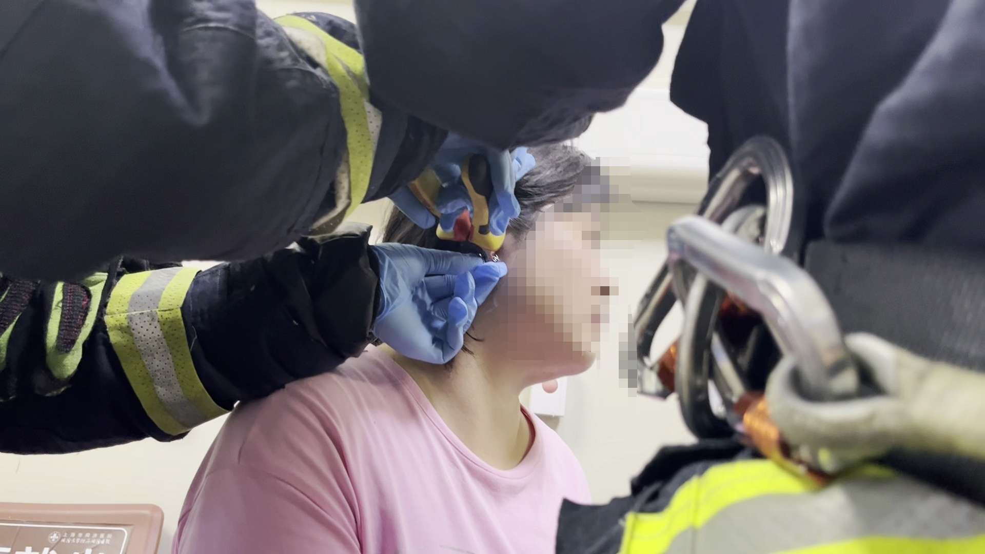 在“万能”消防员的帮助下,几分钟后,市民的两只耳钉都被顺利取下。